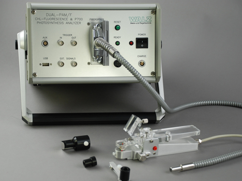 Dual-PAM/F 特別適合于在野外現(xiàn)場(chǎng)進(jìn)行深入的 PSII 和 PSI 活性測(cè)量,是植物生理學(xué)、植物生態(tài)學(xué)、農(nóng)學(xué)、林學(xué)、園藝學(xué)、植物逆境研究的強(qiáng)大助手。光纖版設(shè)計(jì)更輕便,便于攜帶,另外,光纖版尤其適合附著樣品,如苔蘚,地衣的樣品的原位測(cè)量。