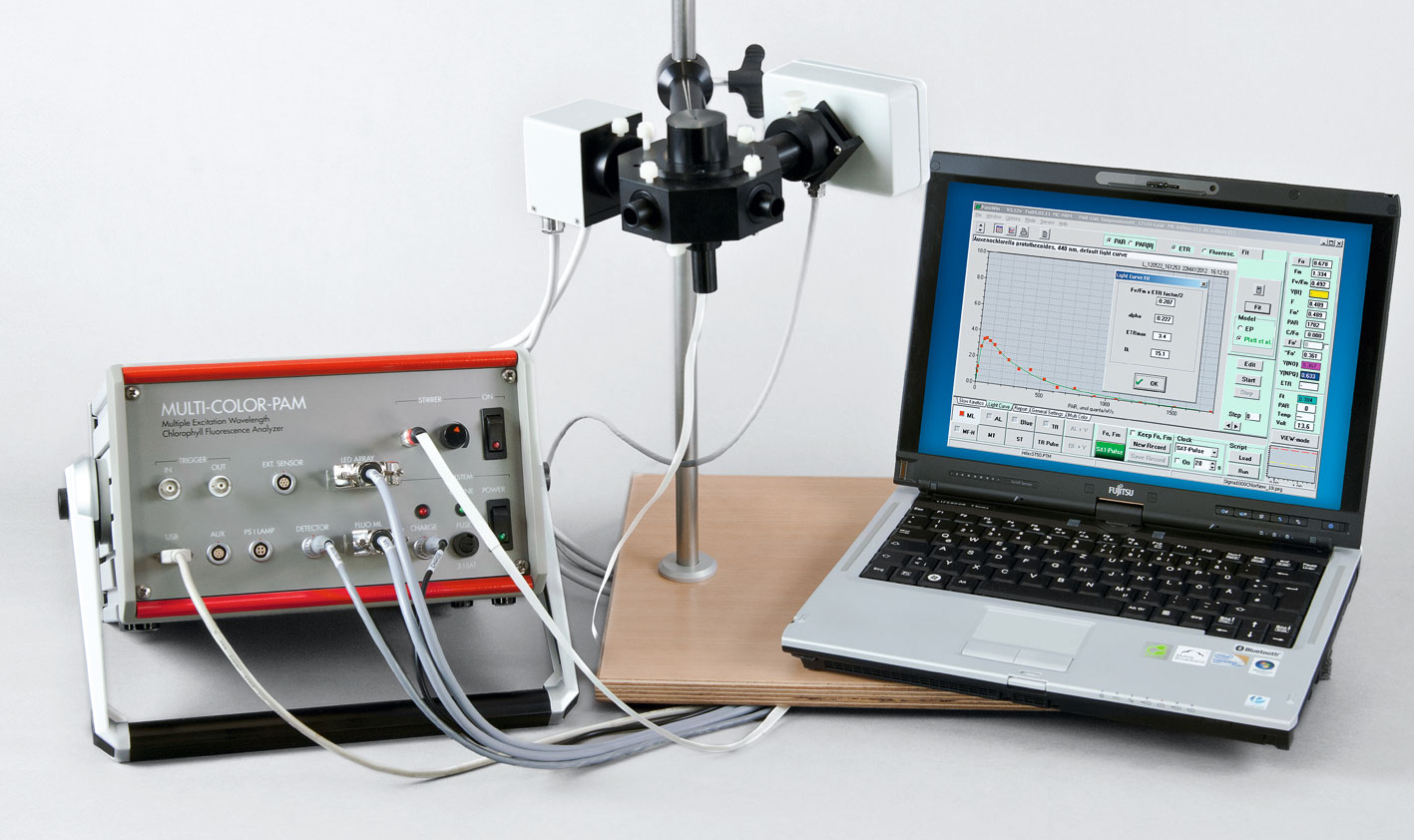 MONITORING-PAM 為多通道調(diào)制葉綠素?zé)晒鈨x,適用于同時對多個樣品進(jìn)行連續(xù)監(jiān)測。測量樣品可以是高等植物或藻類,每套設(shè)備最多可同時連接 7 個測量頭,用于熒光誘導(dǎo)曲線和快速光曲線的測量,以及淬滅分析和暗馳豫分析等。