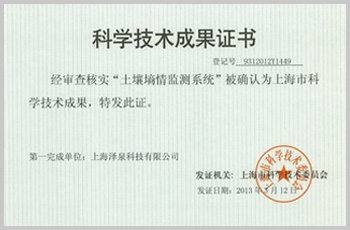 上海市科技成果證書——土壤墑情監(jiān)測(cè)系統(tǒng)
