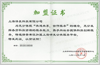 上海研發(fā)公共服務(wù)平臺(tái)加盟證書