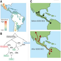 本研究提出了一個全新的玉米起源模型,發(fā)現(xiàn)兩份完全不同的大芻草:小穎大芻草亞種和墨西哥高原大芻草亞種為現(xiàn)代玉米的祖先,修正了玉米單一起源于小穎大芻草亞種的假說。