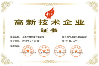 20129,上海澤泉科技有限公司被評選為上海市高新技術(shù)企業(yè)。