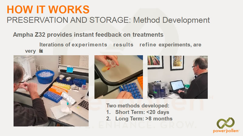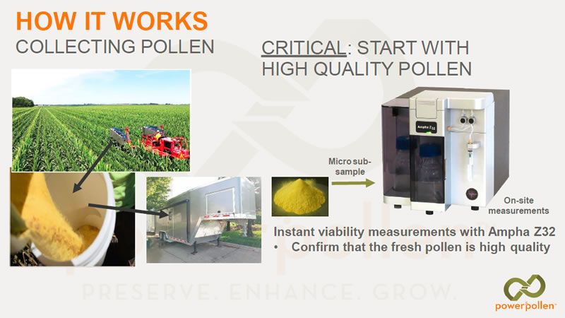 PowerPollen?公司是美國(guó)一家提供授粉解決方案的農(nóng)業(yè)技術(shù)公司,該公司利用Ampha Z32花粉活力分析儀(IFC)在花粉采集、保存、運(yùn)輸、授粉的各個(gè)環(huán)節(jié)嚴(yán)格監(jiān)控玉米花粉的質(zhì)量:
